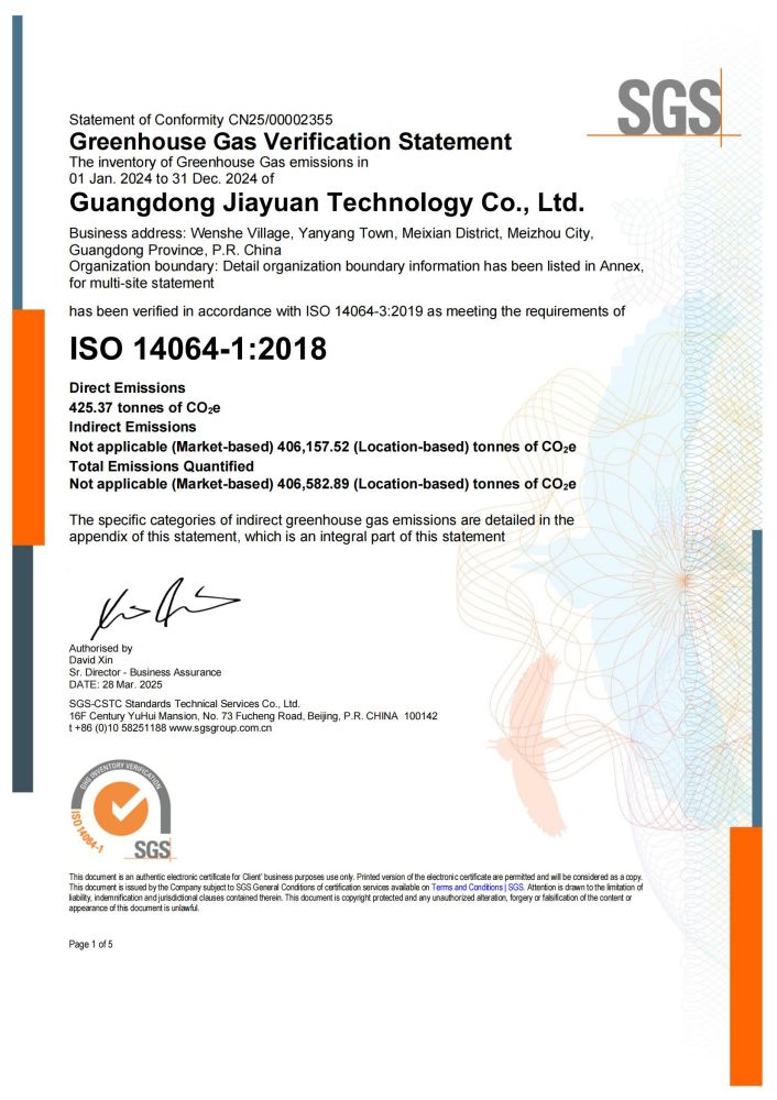 ISO 14064-1:2018溫室氣體核查聲明